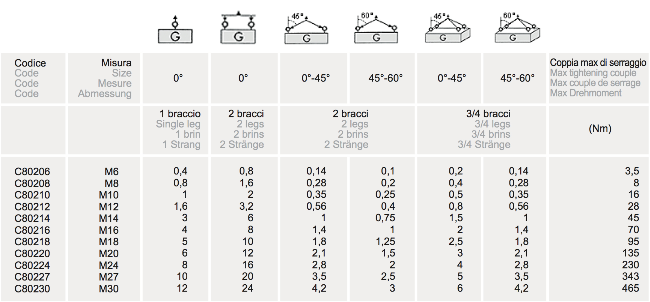 Coefficiente di sicurezza: 4. Avvitare a mano.