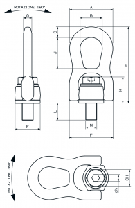 Tiro assiale con minimo ingombro con coefficiente di sicurezza: 5. Disponibile, su richiesta, filettatura e lunghezza gambo fuori standard.