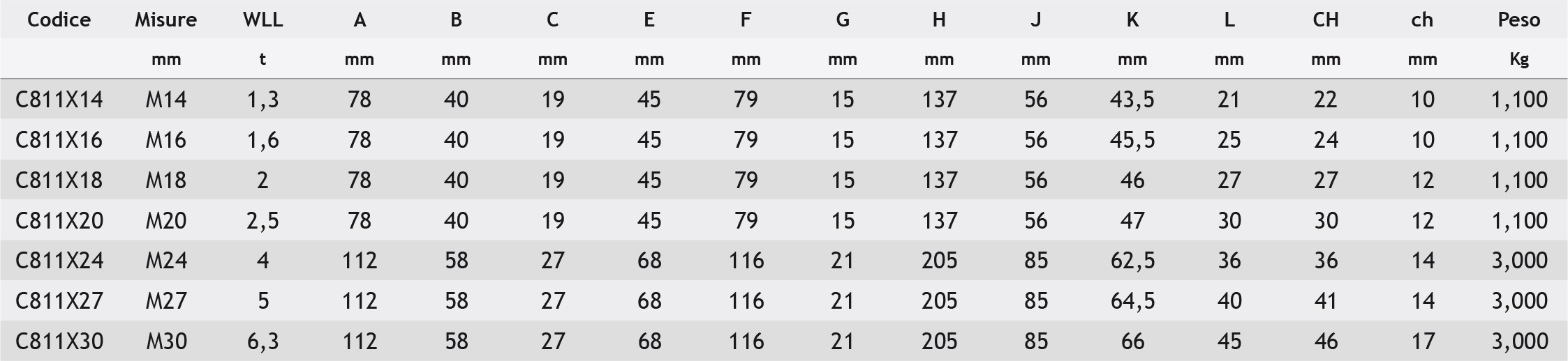 Disponibile anche nella versione con vite intercambiabile; in caso di sostituzione della vite, utilizzare viti con caratteristiche meccaniche uguali a quella fornita in dotazione al pezzo.
