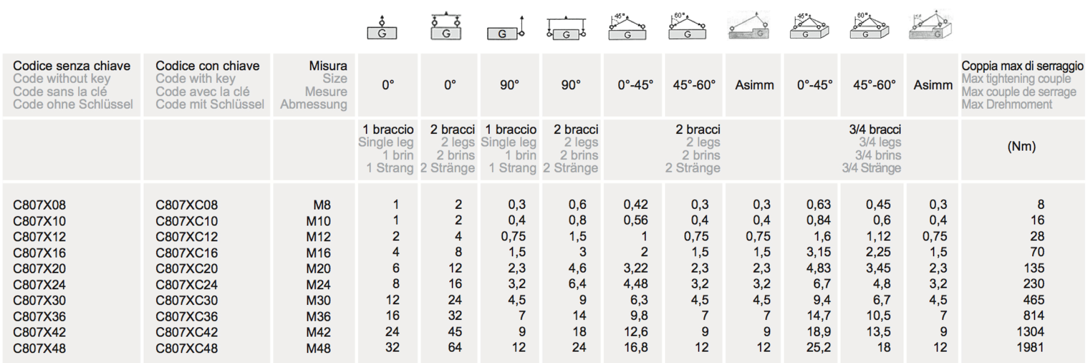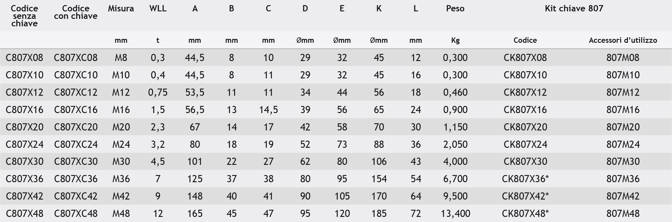 Orientabile per ogni direzione di carico. Chiave speciale per misure da M8 a M30.