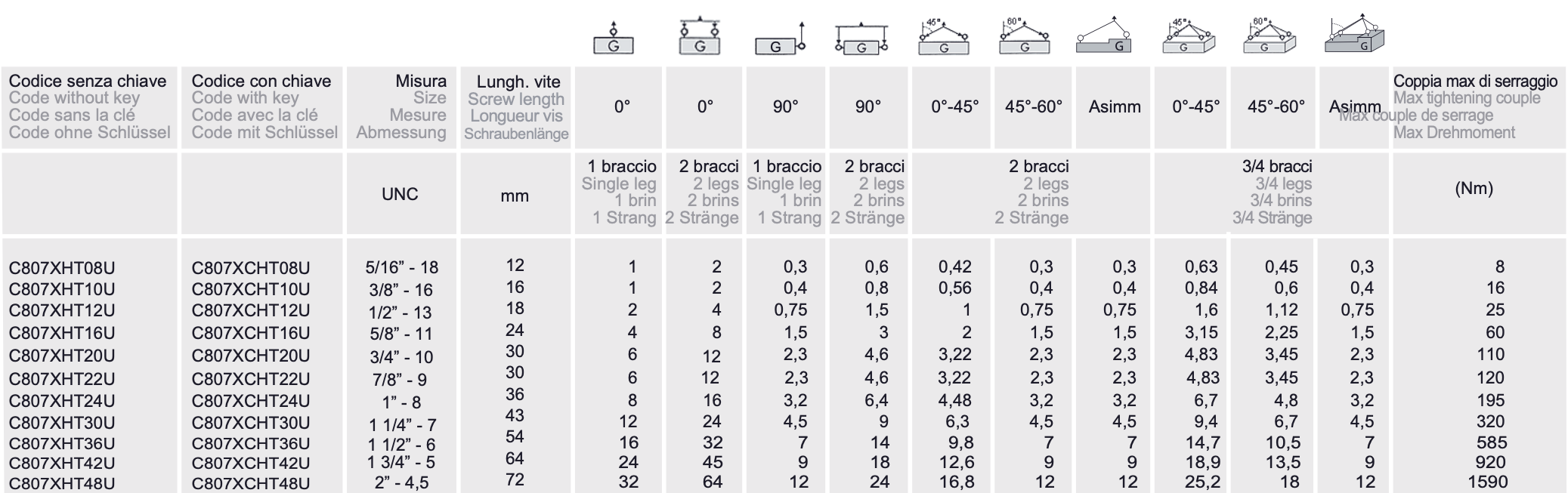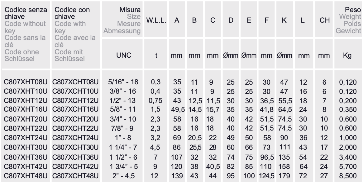 Orientabile per ogni direzione di carico. Chiave speciale per misure da M8 a M48.