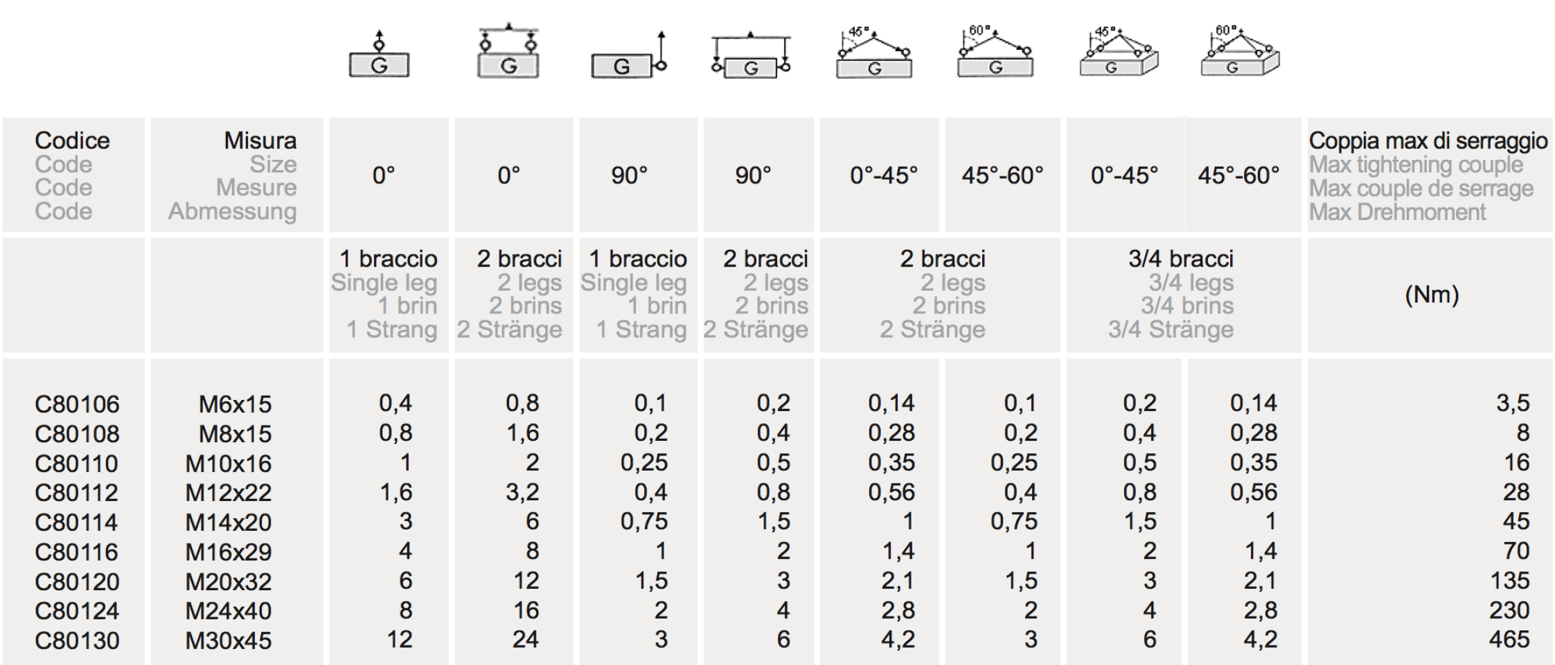 Coefficiente di sicurezza: 4. Avvitare con chiave.