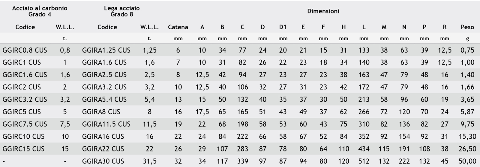 - W.L.L. = Forza Limite di Lavoro