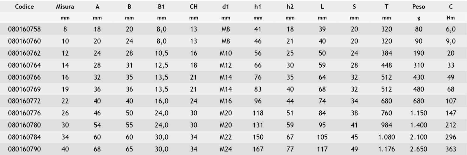 - C = Coppia di serraggio dado (Newton metro)