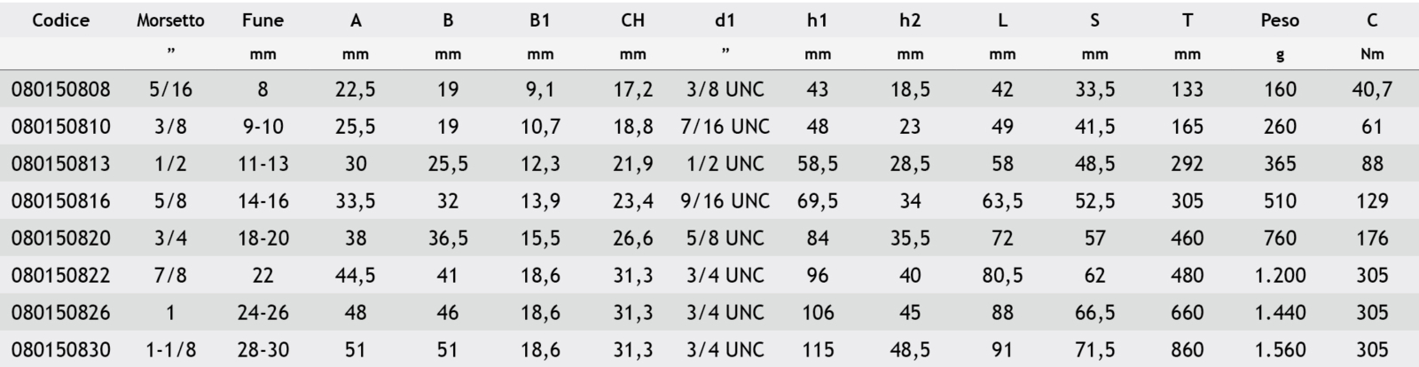 - N = Numero minimo di morsetti consigliati da montare sulla fune
