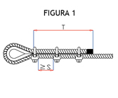 - T = Lunghezza minima del tratto terminale della fune (vedi figura 1)
